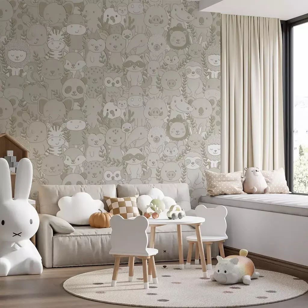 | Referência | Papel de Parede Carinhas de Animais Bege |
