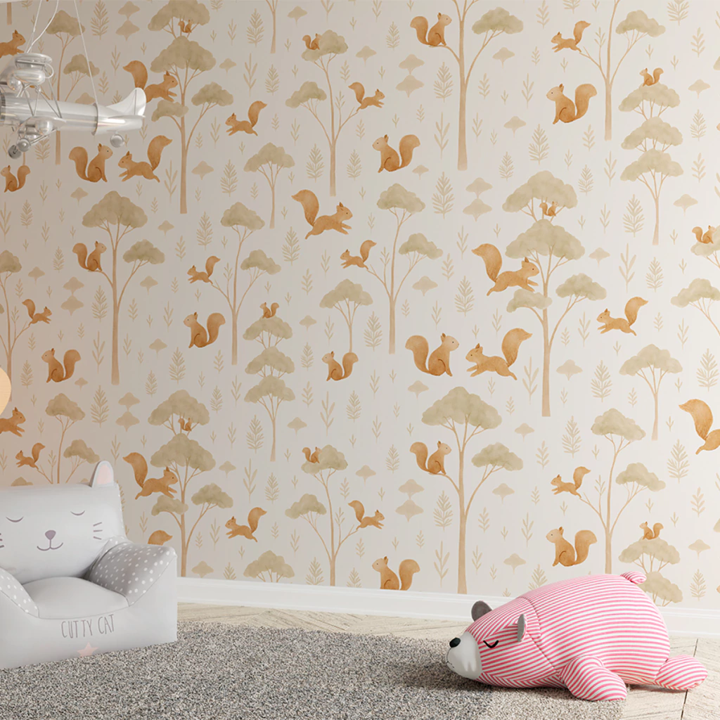 | Referência | Papel de Parede Esquilos na Floresta Bege |