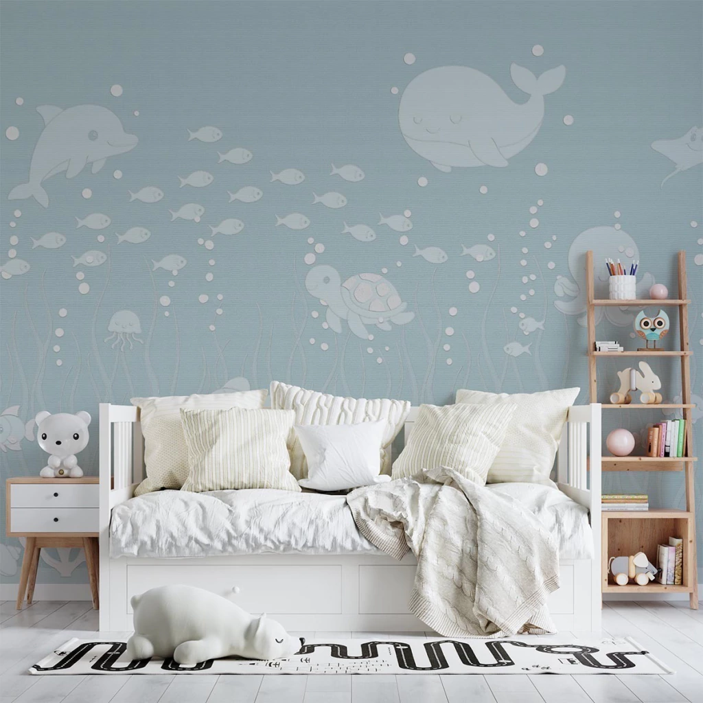 | Referência | Papel de Parede Fundo do Mar Baleias e Golfinhos Azul |