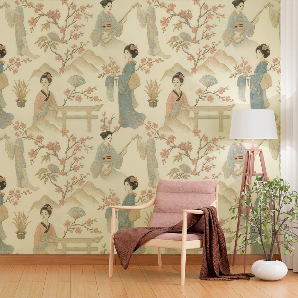 | Referência | Papel de Parede Oriental Gueixas Japonesas Bege |